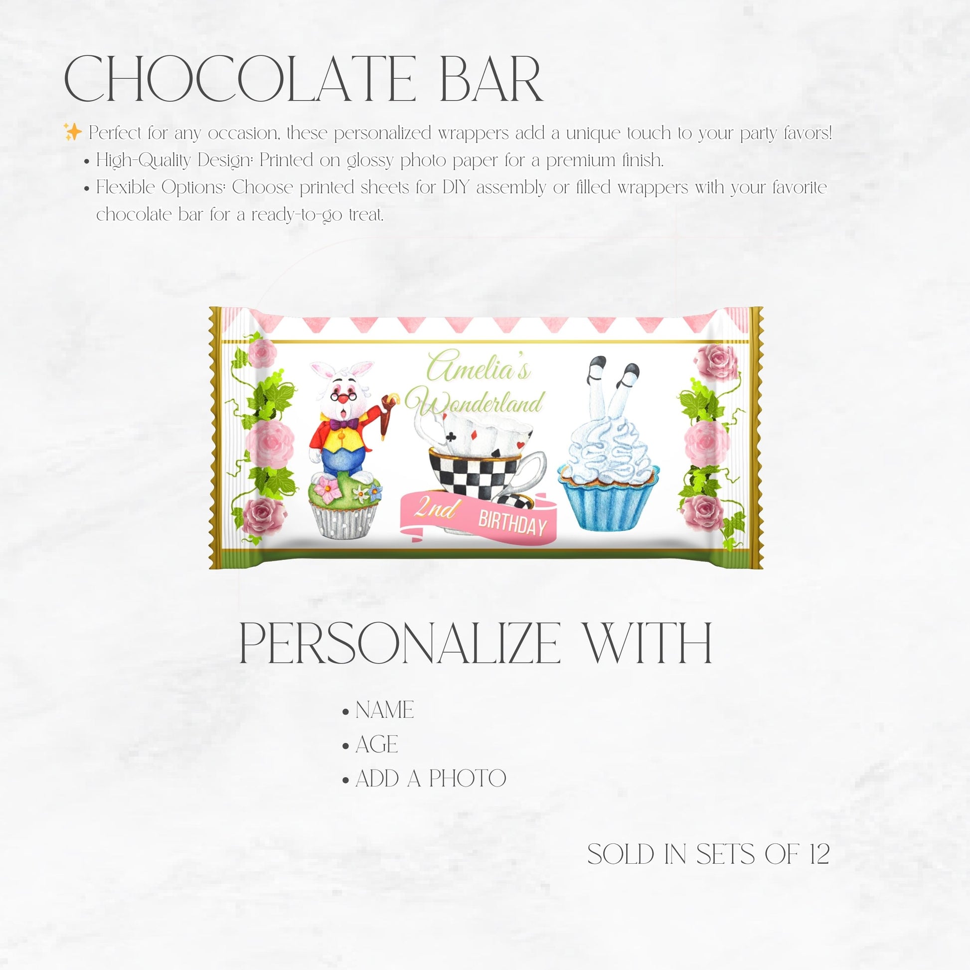 Order today and bring a touch of Wonderland to your party with these magical chocolate bar wrappers!