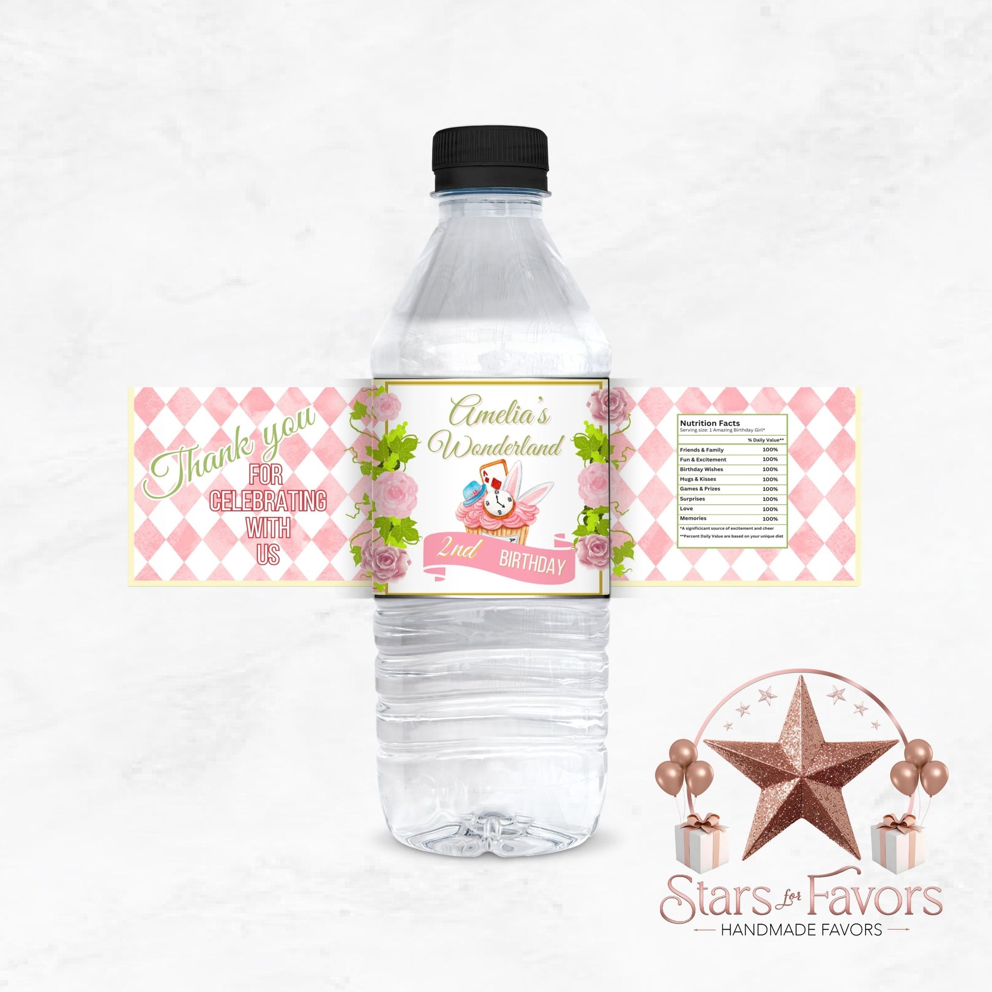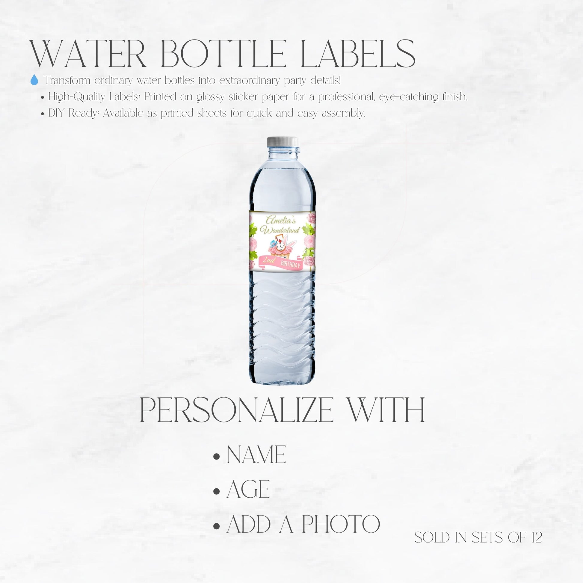 Whether you're hosting a whimsical tea party or celebrating a special occasion, these custom water bottle labels will bring your Alice in Wonderland theme to life. Order your set today and add a magical touch to your event!