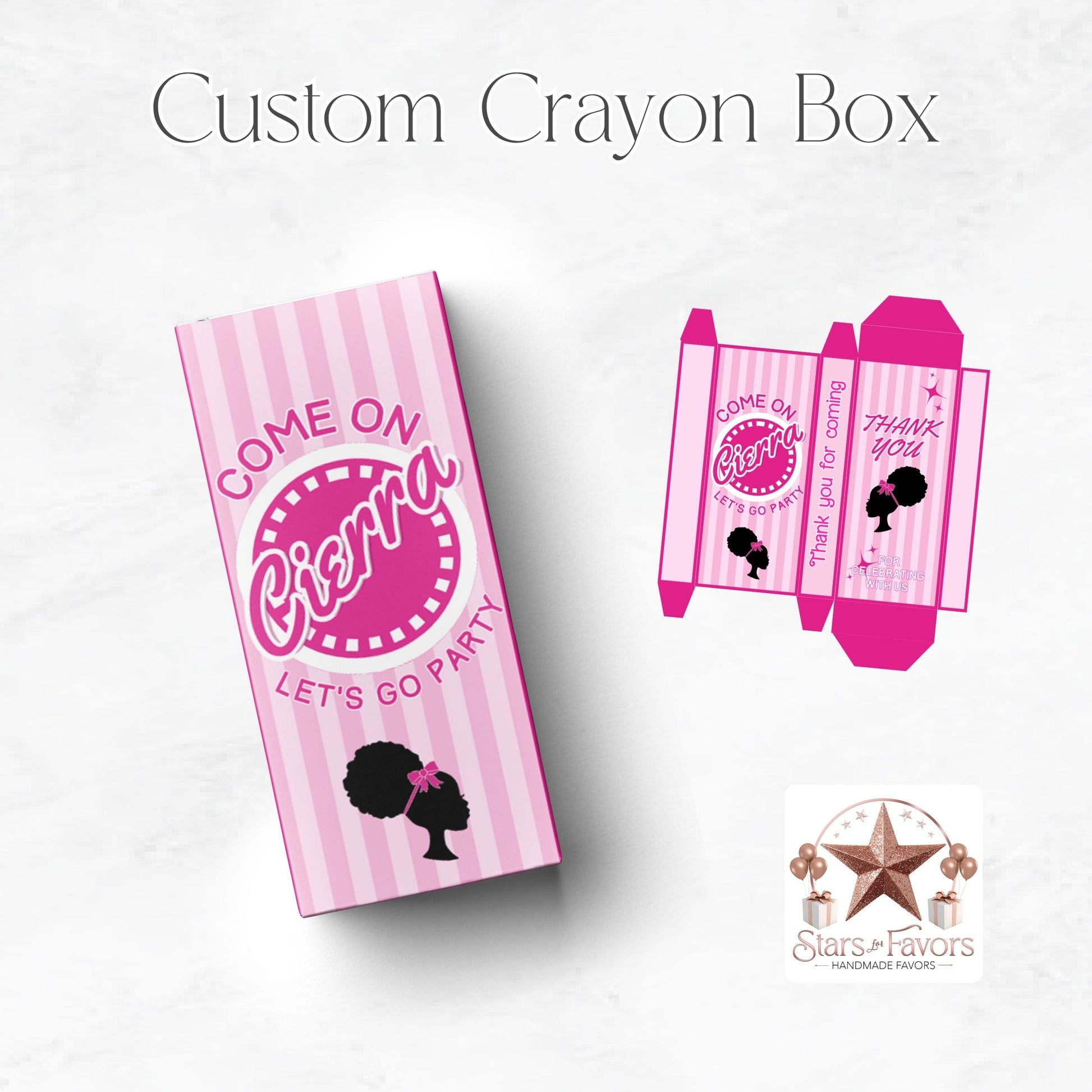 - Custom Crayon Boxes: Add a personalized touch with custom crayon boxes, available upon request, to match your event theme and make the favor extra special.