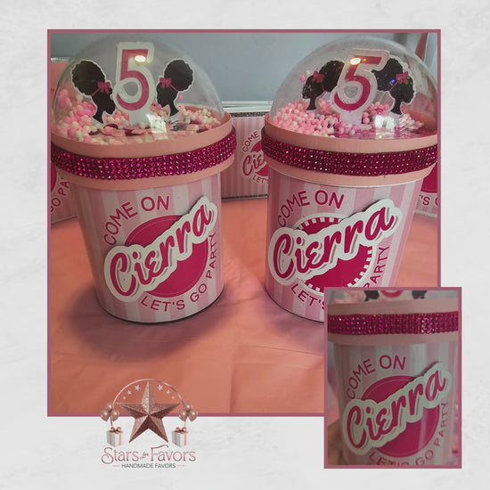 Make your Barbie-themed party extra fabulous with our Come On, Letโs Go! Afro Barbie Pringles Shakers! Designed with a two-tone pink background and a beautiful Afro Barbie silhouette, these mini snack favors add the perfect touch of glam and style to your celebration.
