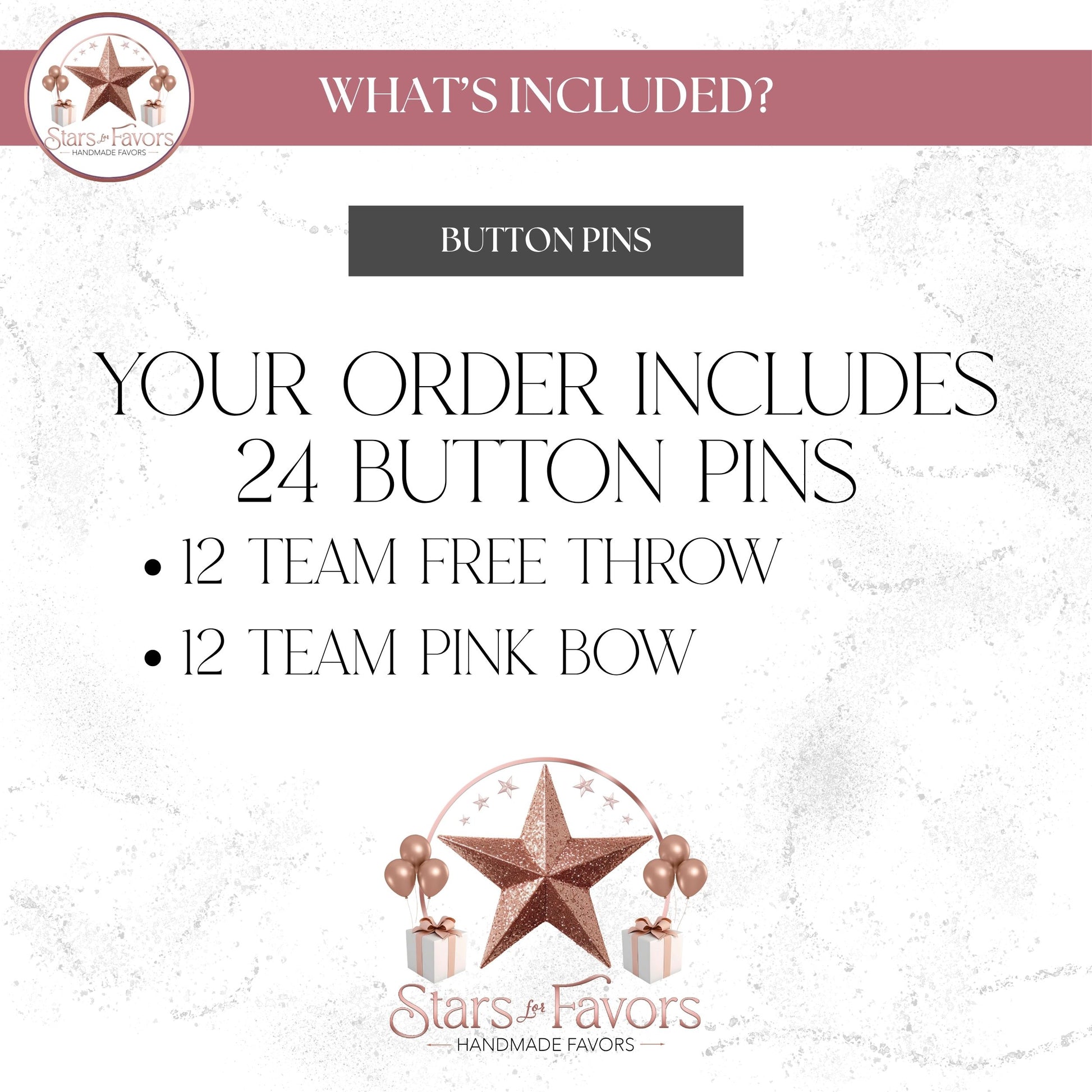 ๐ Gender Reveal Button Pins โ Team Free Throws or Team Pink Bows | Set of 24 | 2.25" Physical Buttons ๐