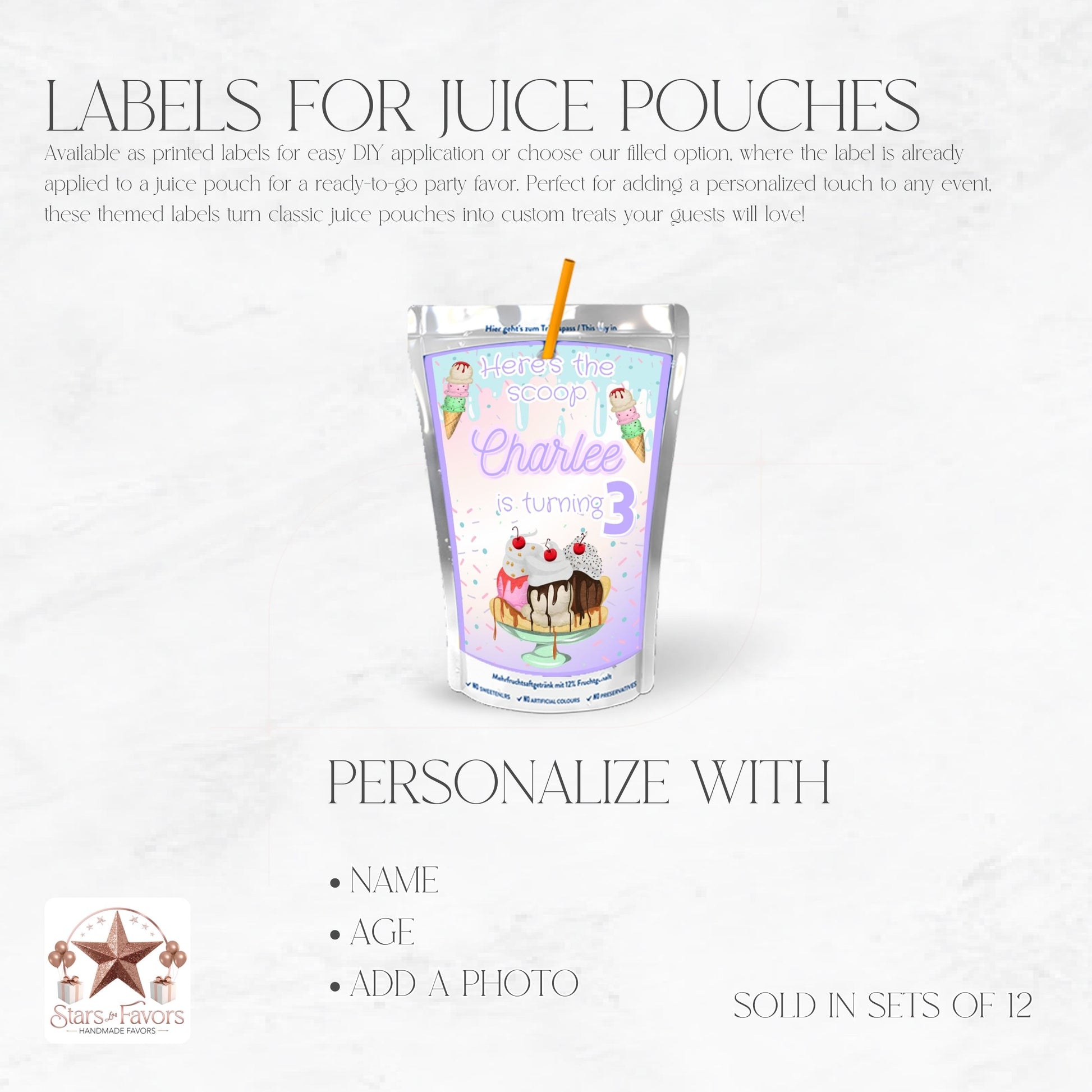 - Delicious Design: Adorned with a playful pastel color palette and whimsical ice cream graphics, these juice pouches are sure to bring a smile to every guest's face.