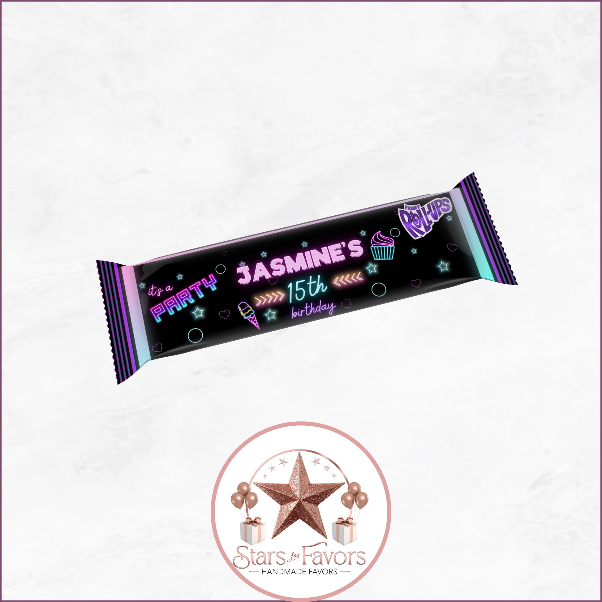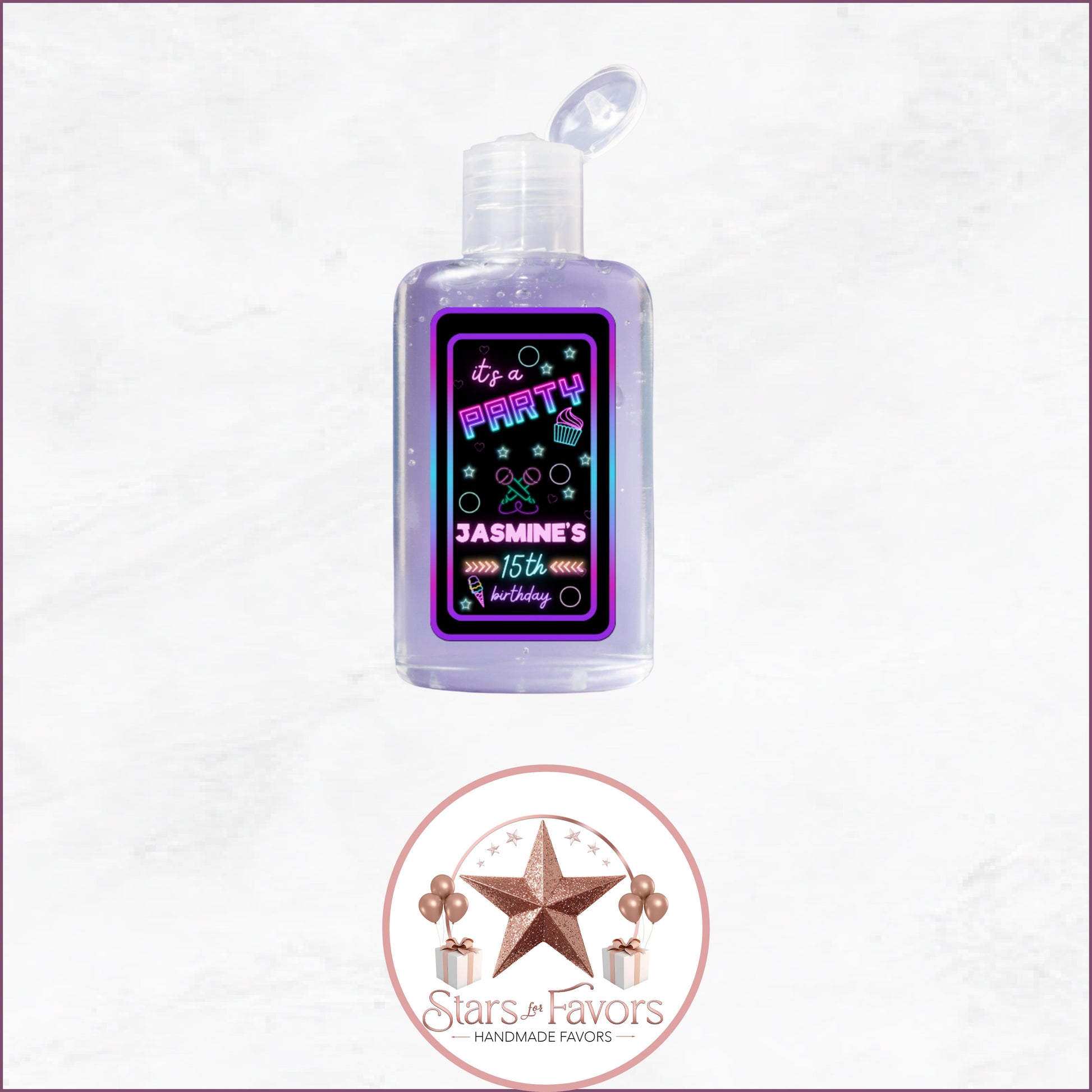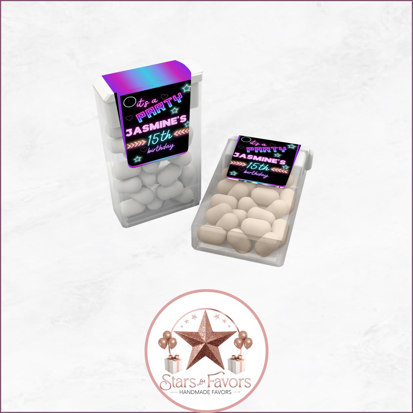 With 27 matching favor designs, youโll have a perfectly coordinated party from start to finish. Each favor is customized with your name, age, and event details โ and you choose how you want them delivered: