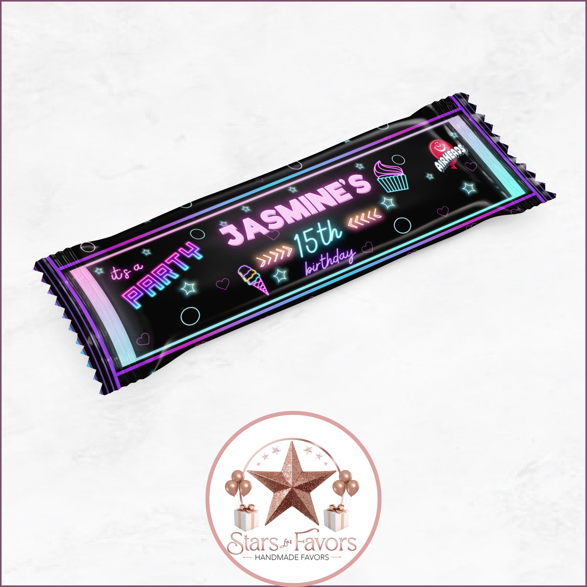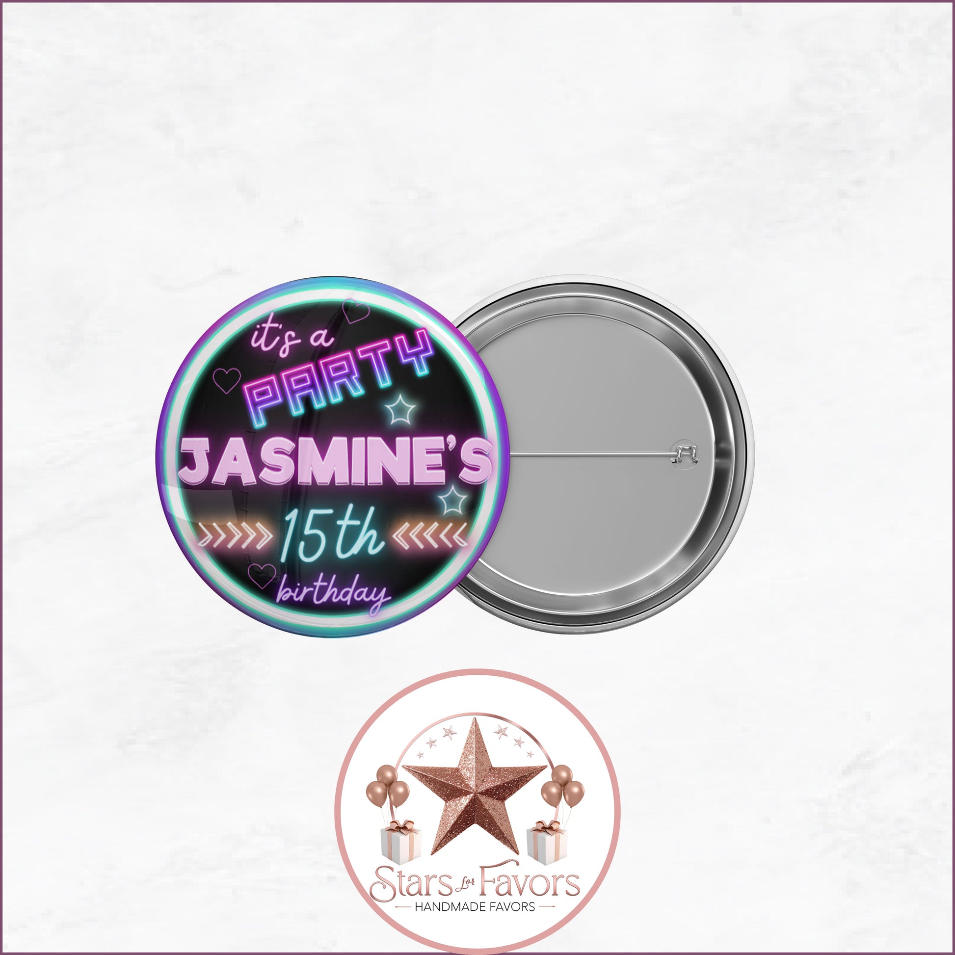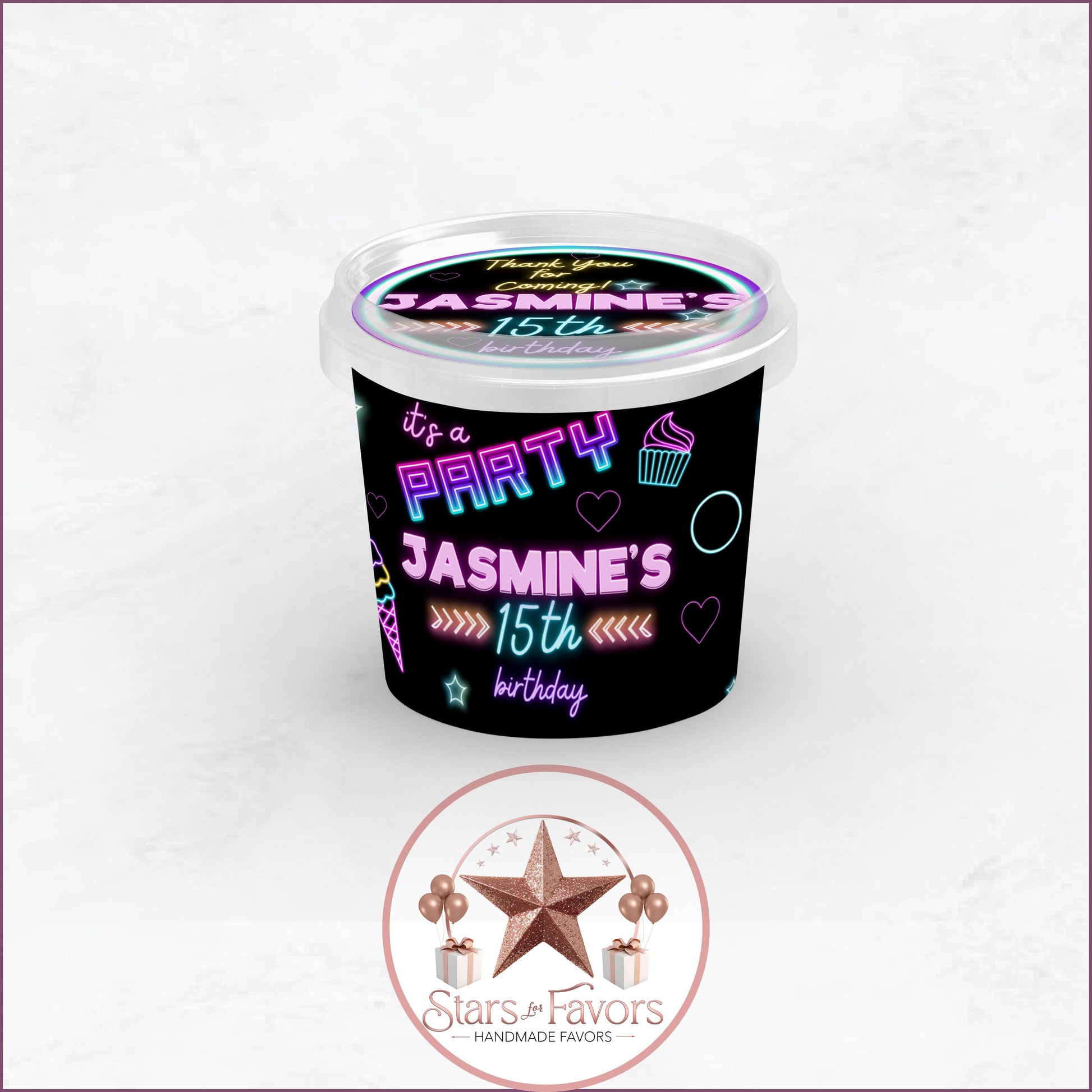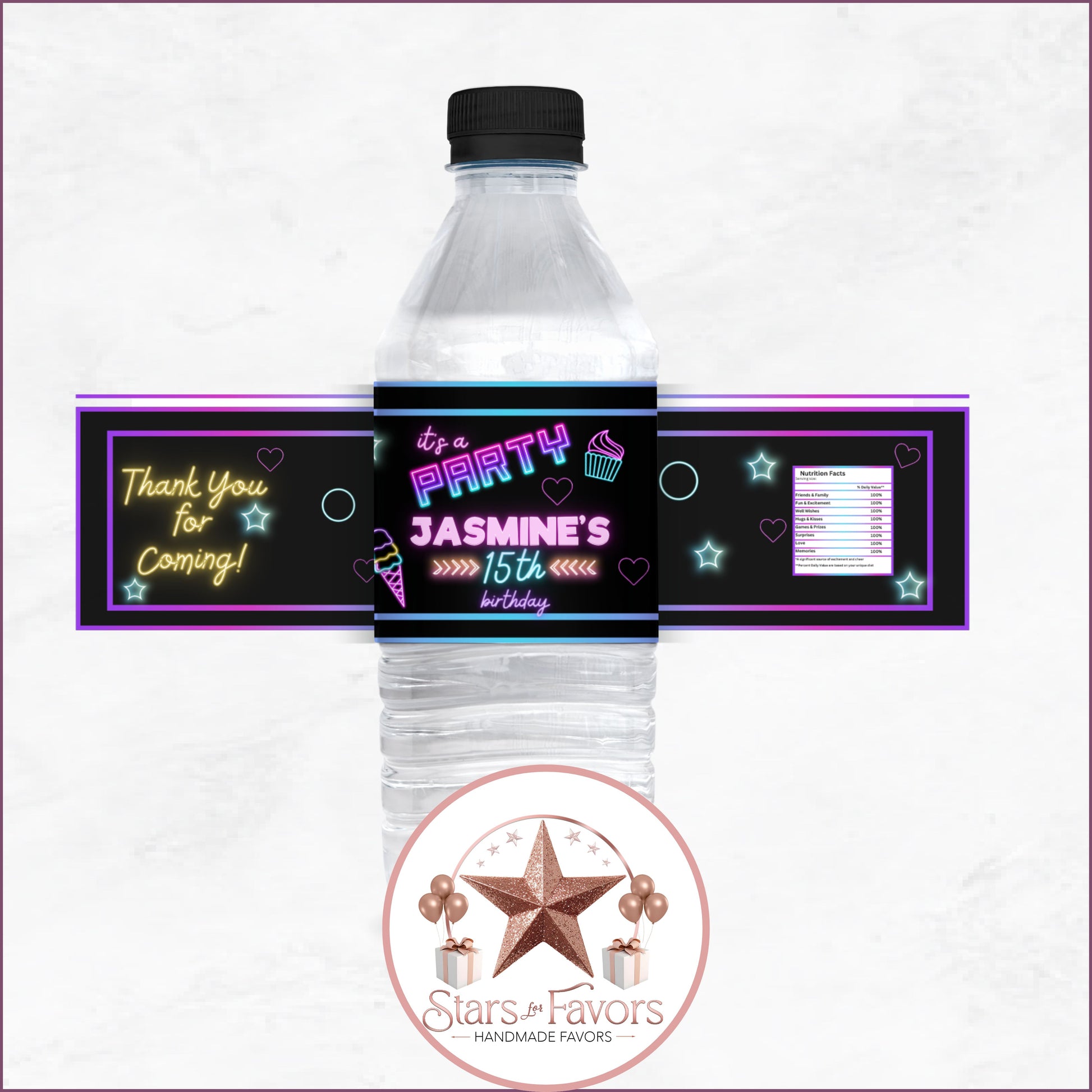 With 27 matching favor designs, youโll have a perfectly coordinated party from start to finish. Each favor is customized with your name, age, and event details โ and you choose how you want them delivered: