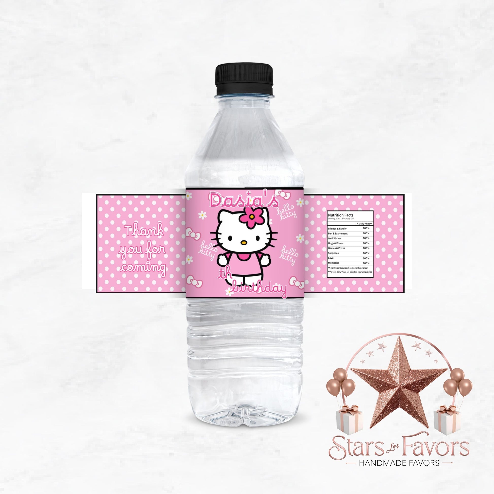 Hello Kitty Personalized Water Bottle Labels – Pink Birthday Party Favor | Printed Labels Only | Set of 12