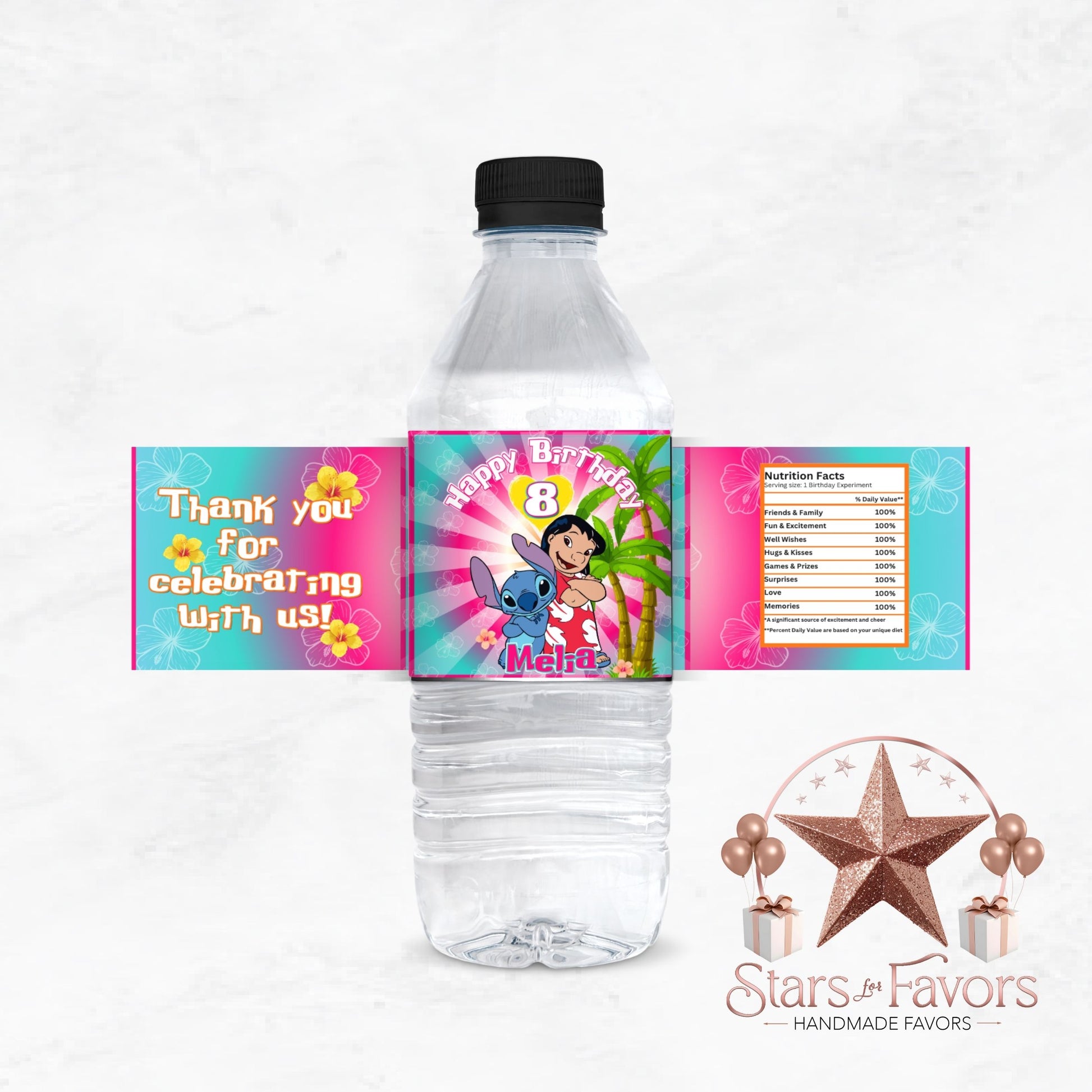 Add a splash of style to your setup with custom Lilo & Stitch water bottle labels – a simple touch that makes your celebration unforgettable!