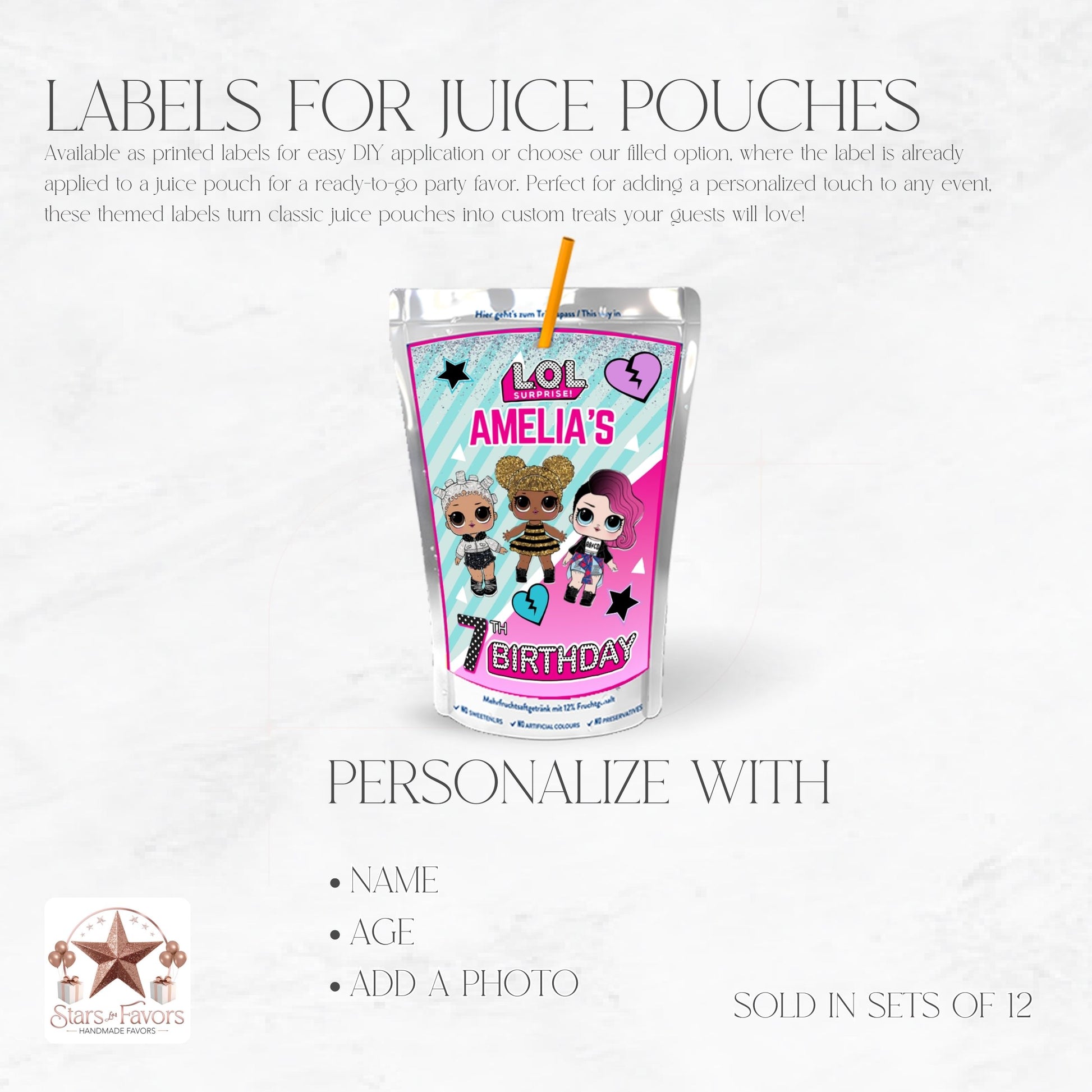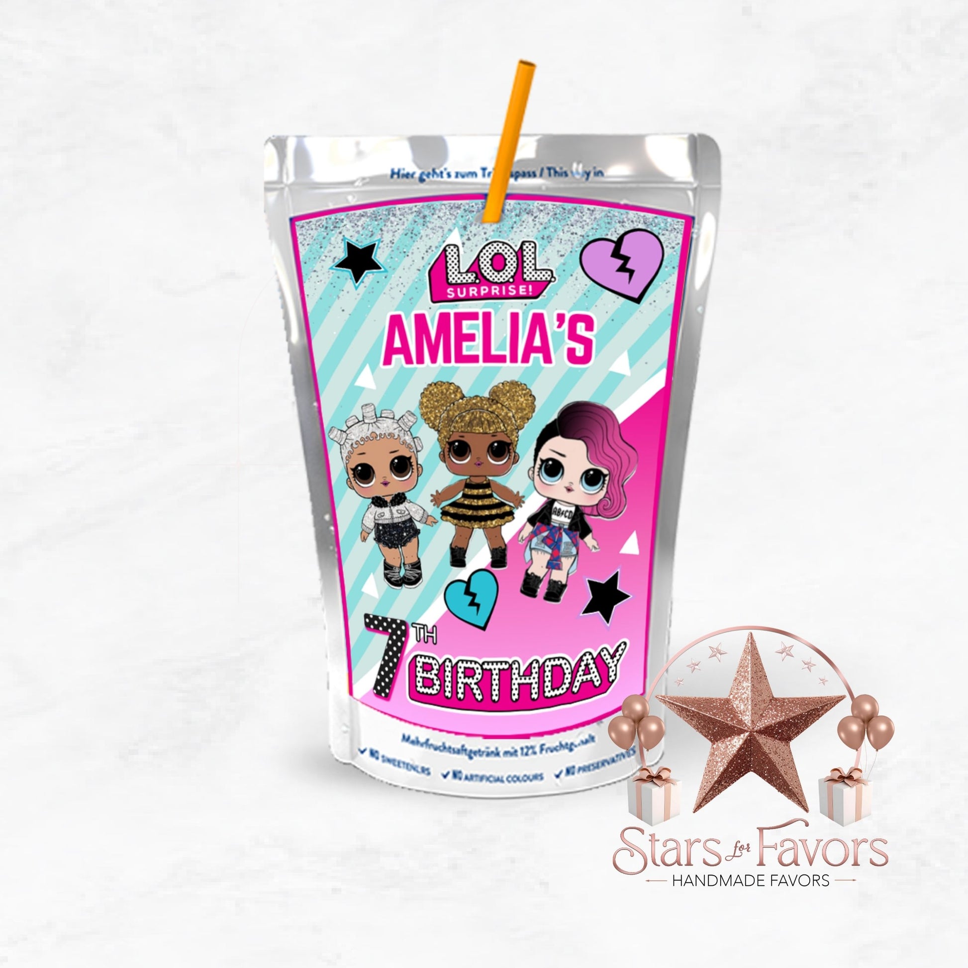 Order your set of 12 custom Capri Sun juice pouches today and make your LOL Doll party extra special!