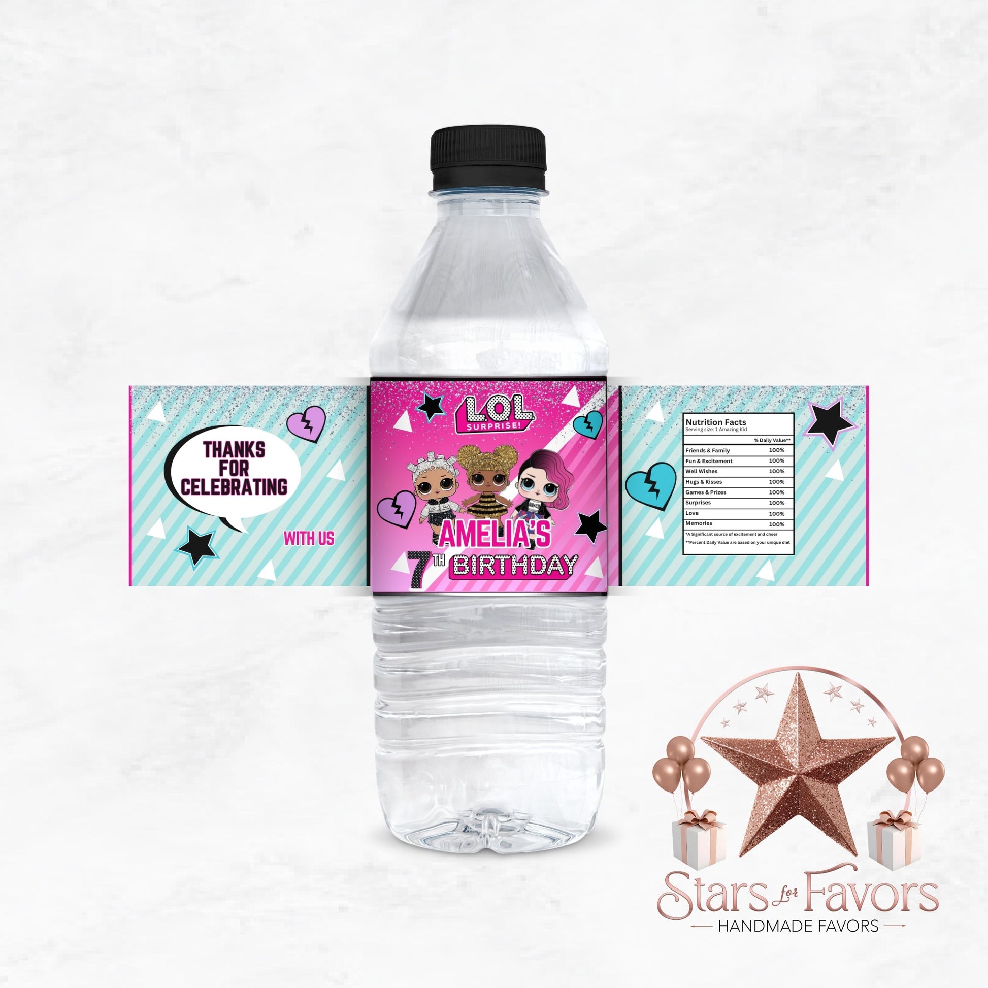 Order your set of 12 custom LOL Doll-themed water bottle labels today and bring some fun flair to your next celebration!