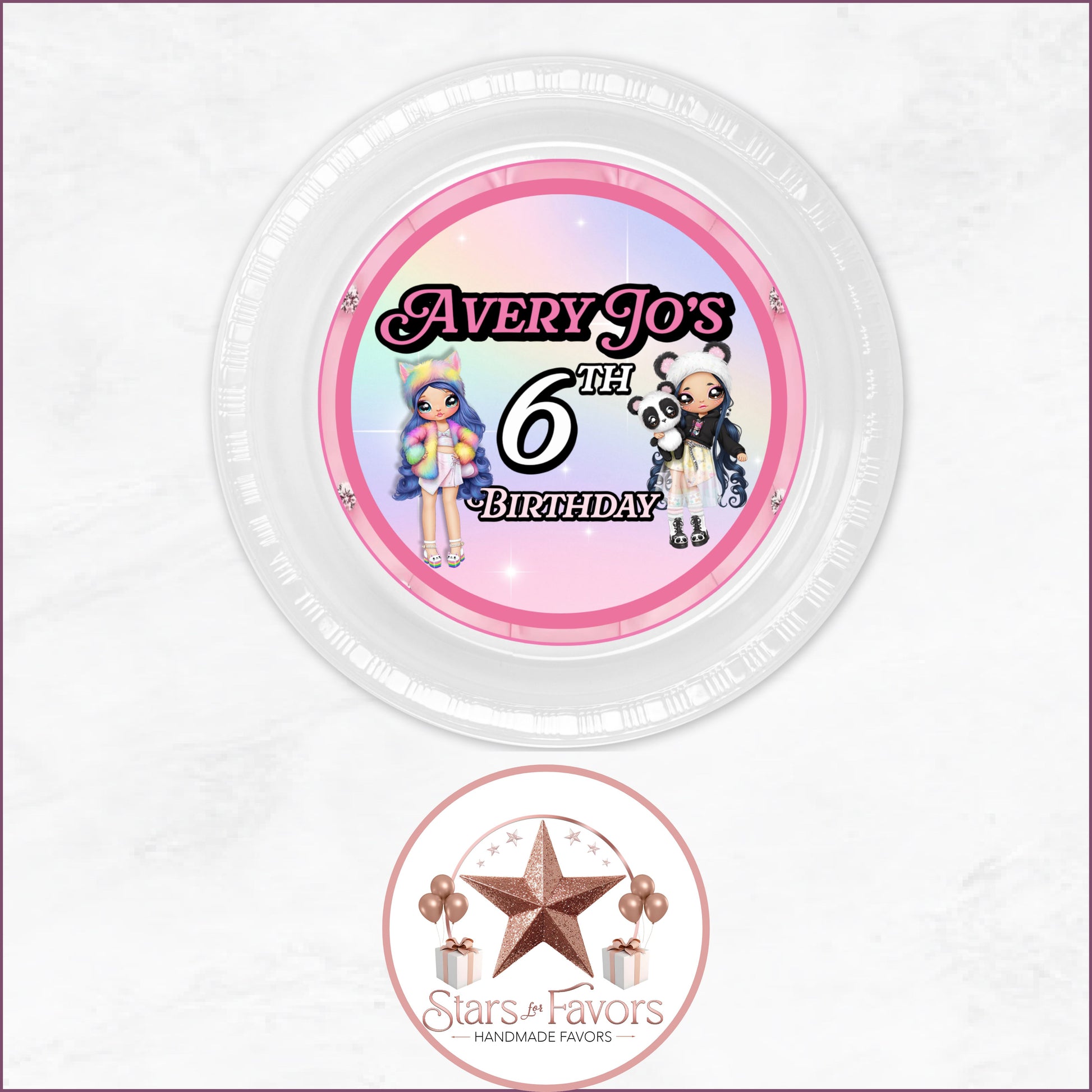 💖 Every favor is designed in a coordinated Na!Na!Na! Suprise Dolls, featuring pastels, sparkles and images of each doll