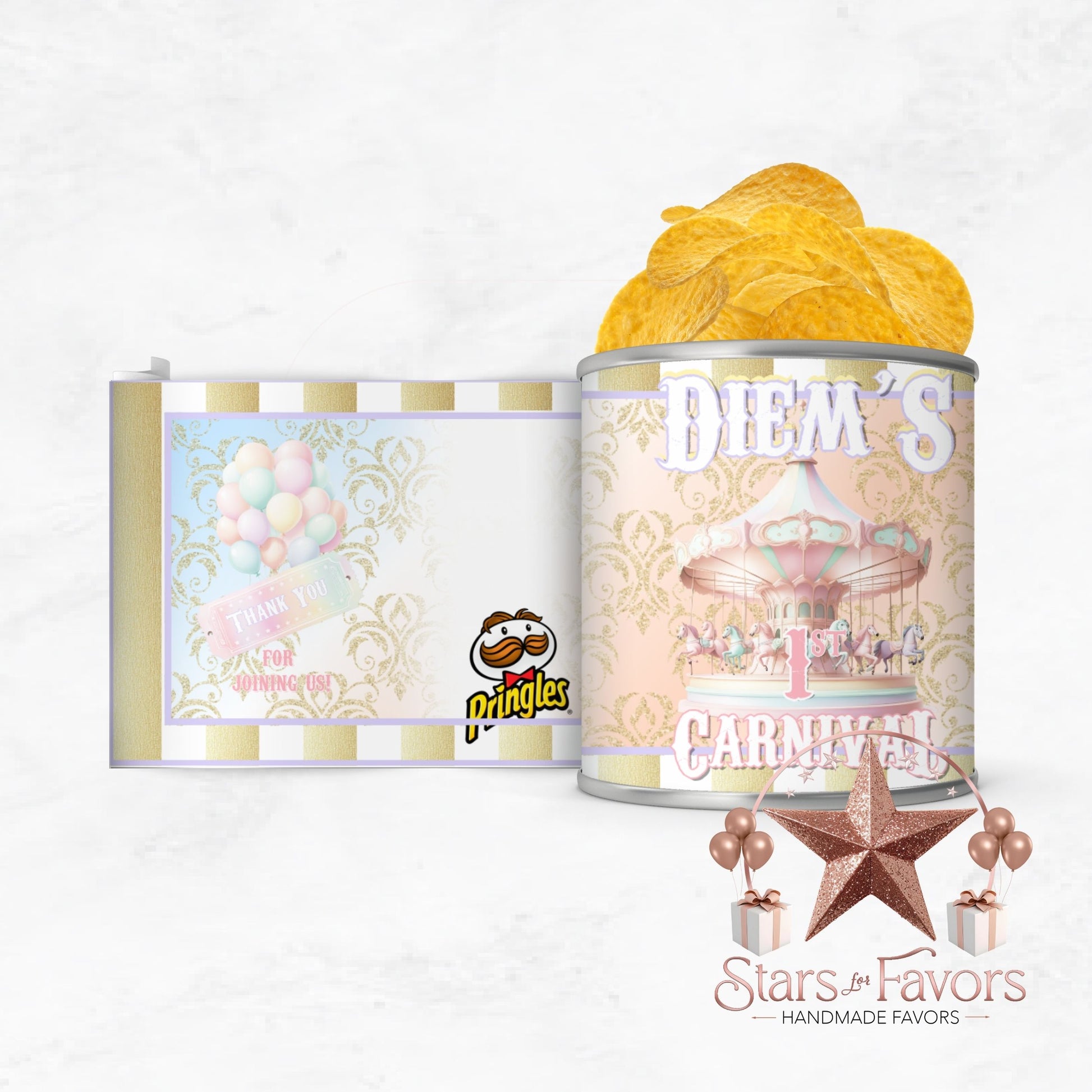 ๐ฅ Pastel Carnival Mini Pringles Can Wrappers โ Custom Party Favors (Set of 12)