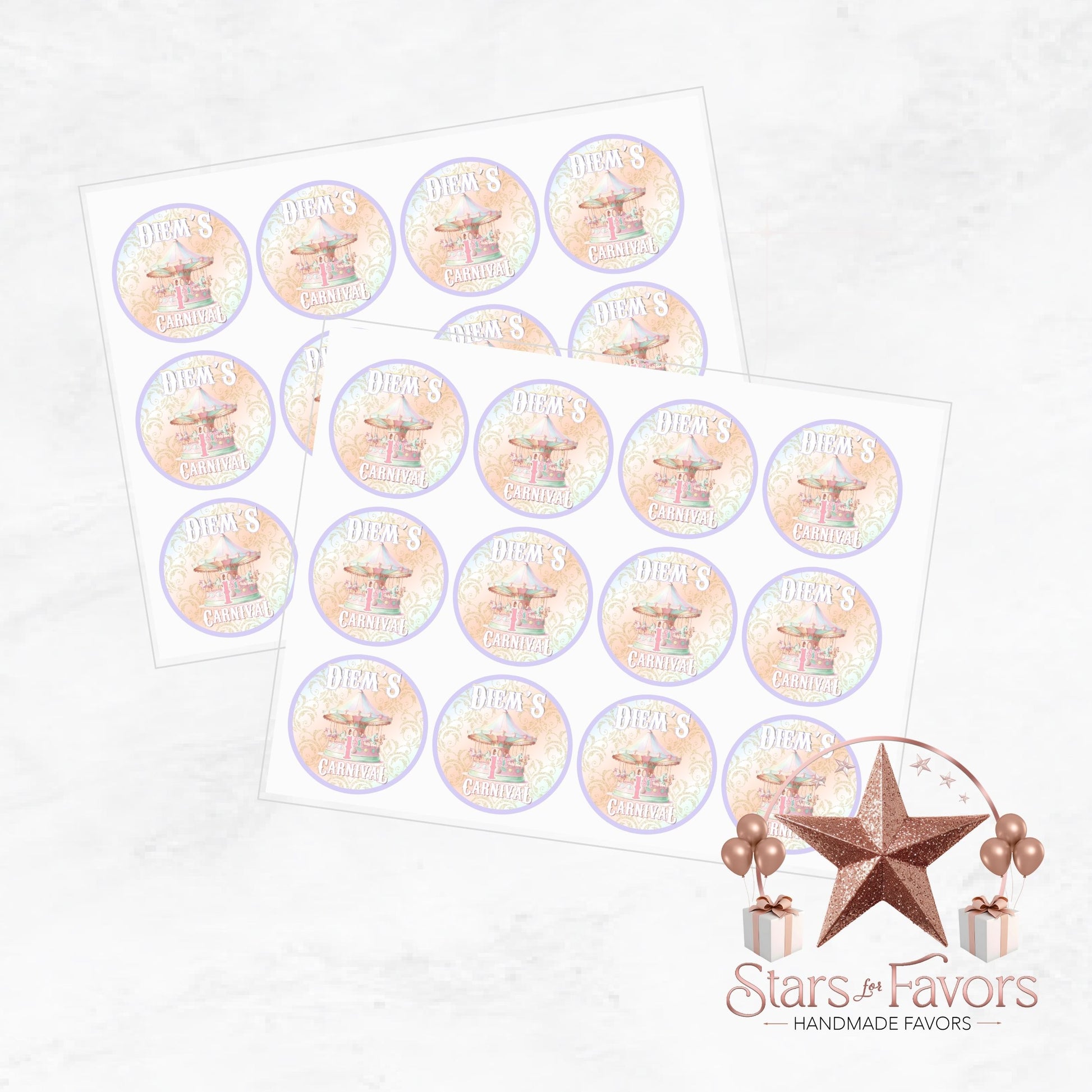 🎠 Pastel Carnival Personalized Stickers – Custom Party Decor (Set of 24)