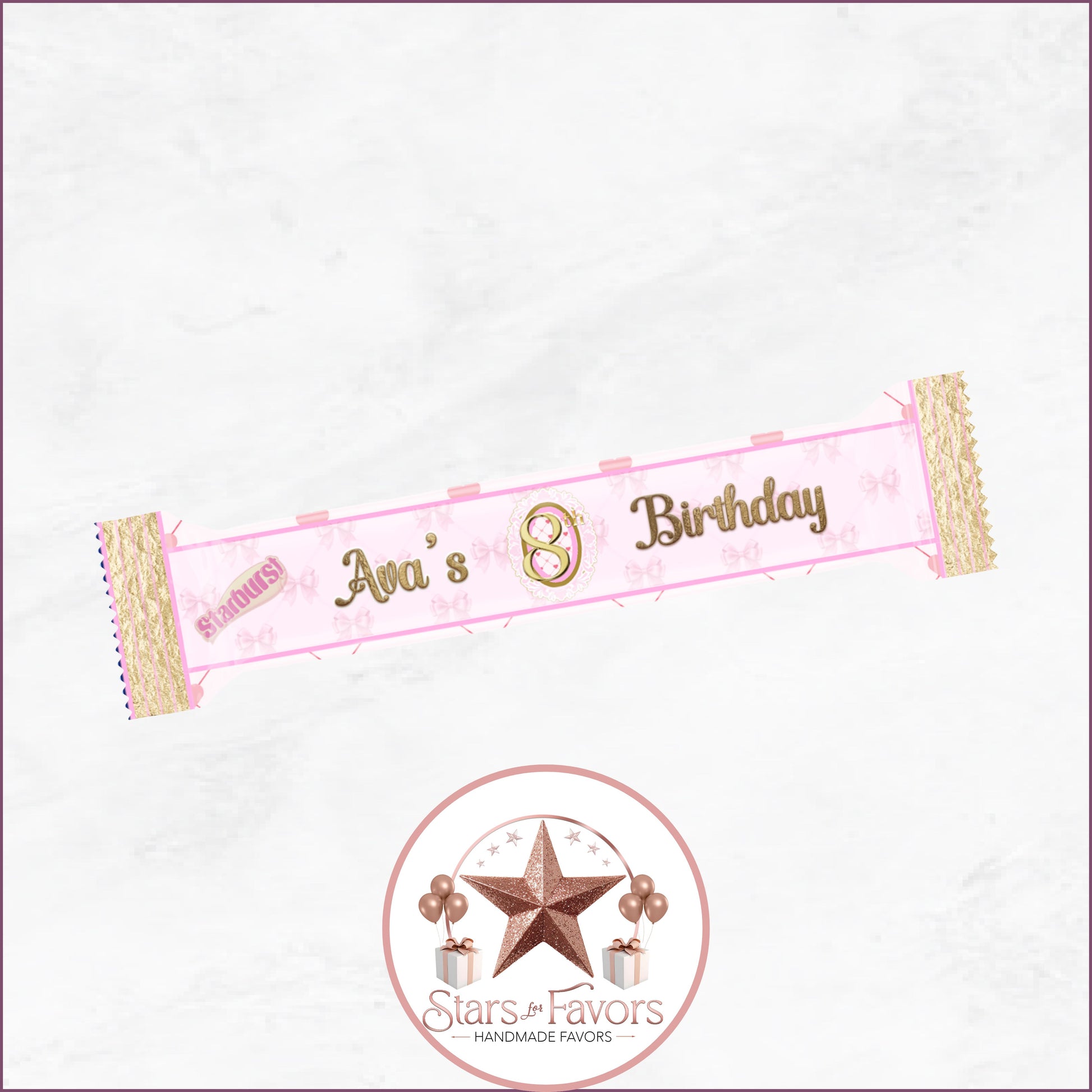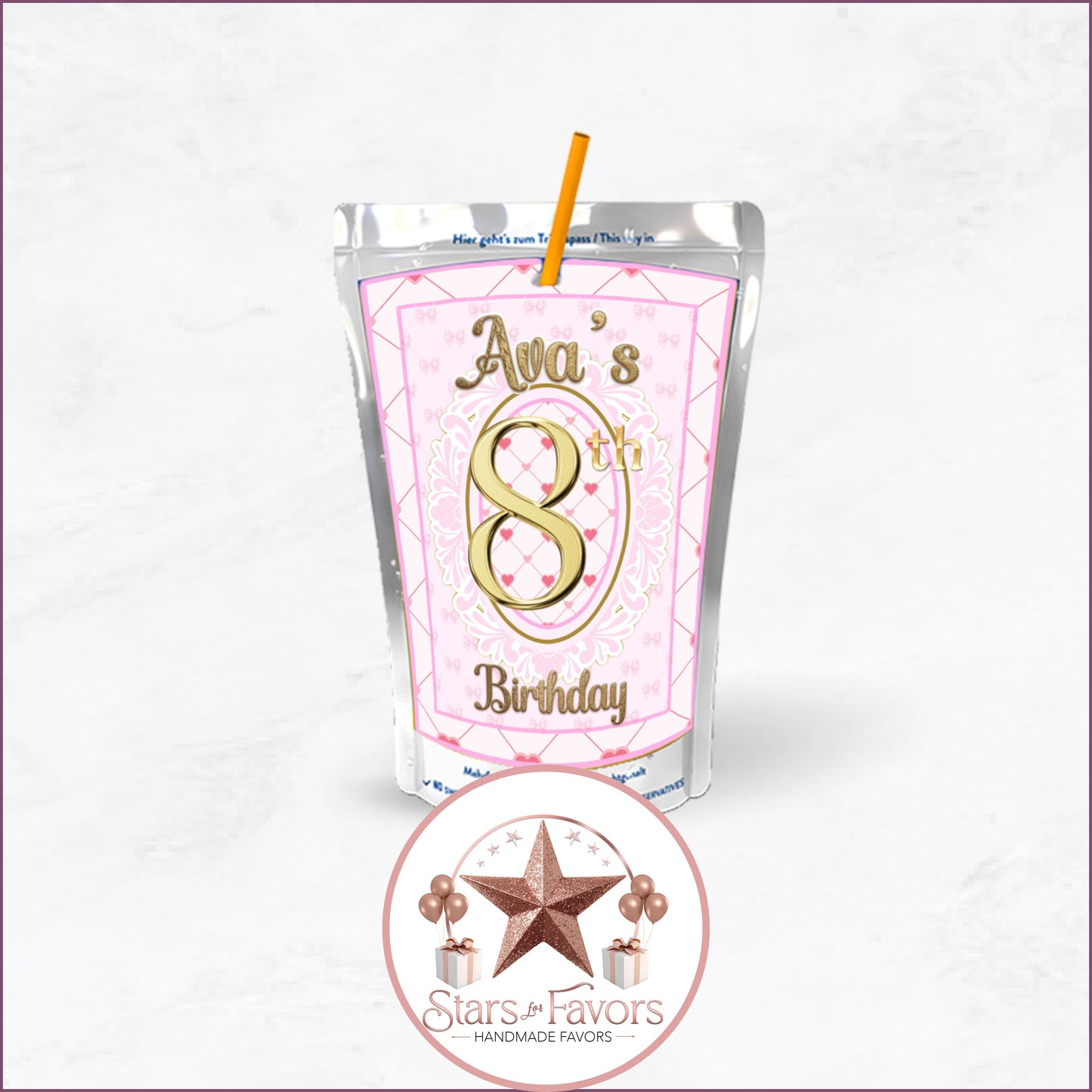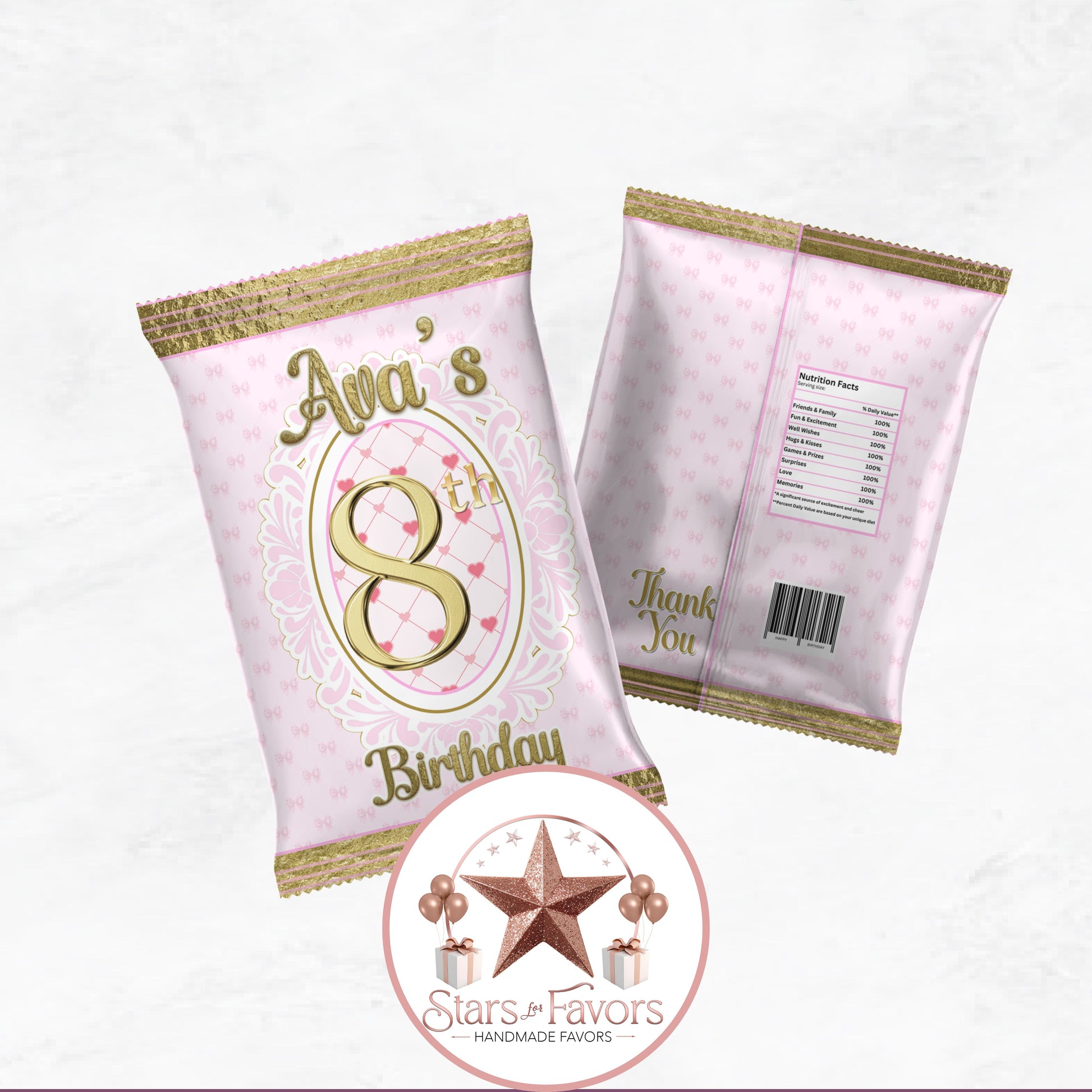 Add a touch of luxury and charm to your celebration with the Pink Bows Party Favor Collection — the perfect blend of blush pink, gold accents, and timeless elegance. Each item in this collection is personalized with your child’s name and age and features soft pink patterns, delicate bows, and sophisticated gold detailing, creating a truly refined look for your birthday setup.