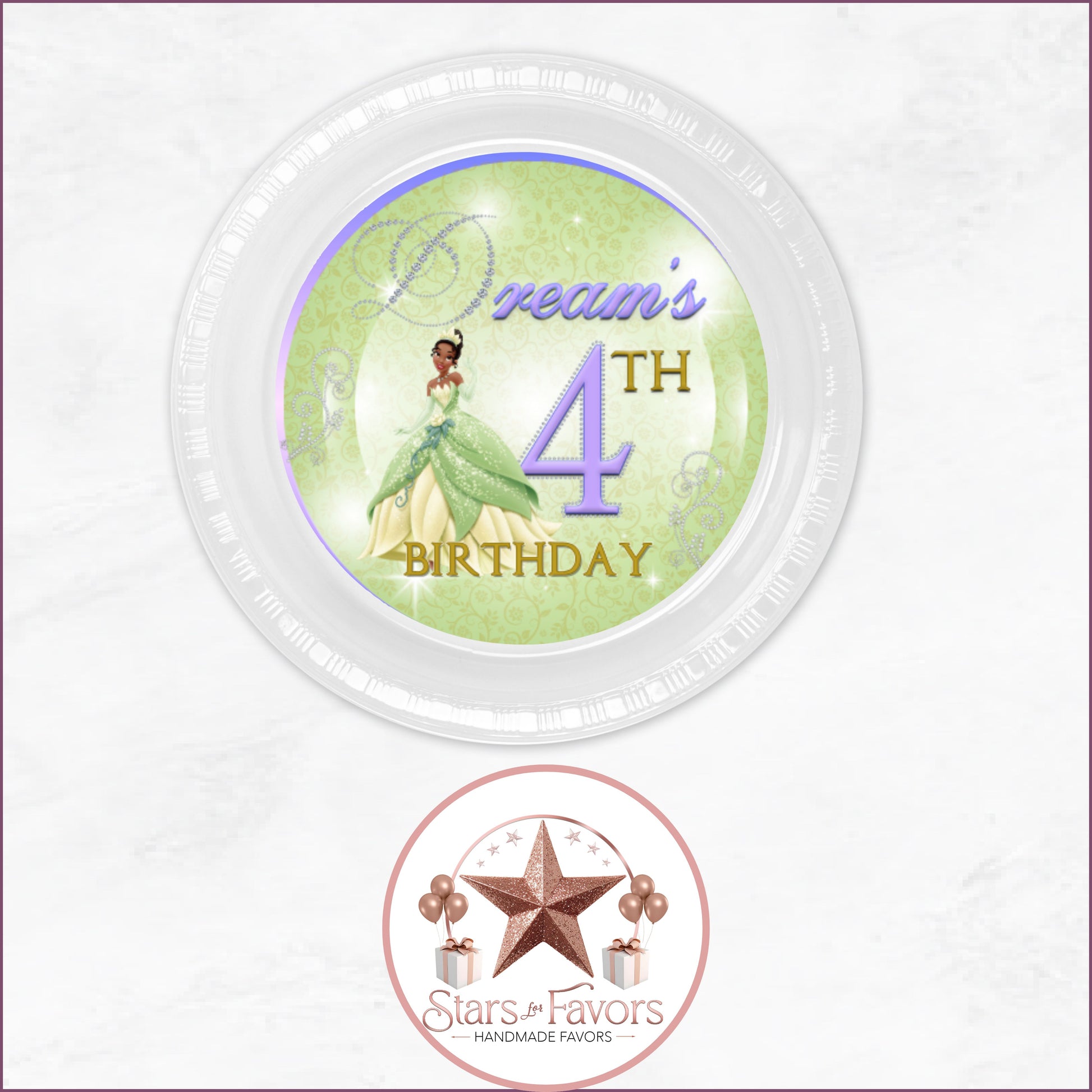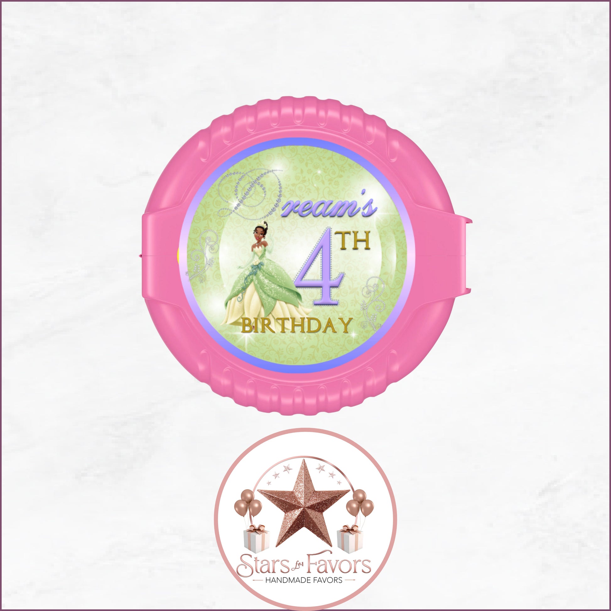 Bring the magic of The Princess and the Frog to your celebration with our Princess Tiana–inspired custom party favors! Perfect for birthdays, baby showers, and royal celebrations, these favors feature an elegant green and lavender design, sparkling tiara details, and your choice of personalization for a truly one-of-a-kind event.
