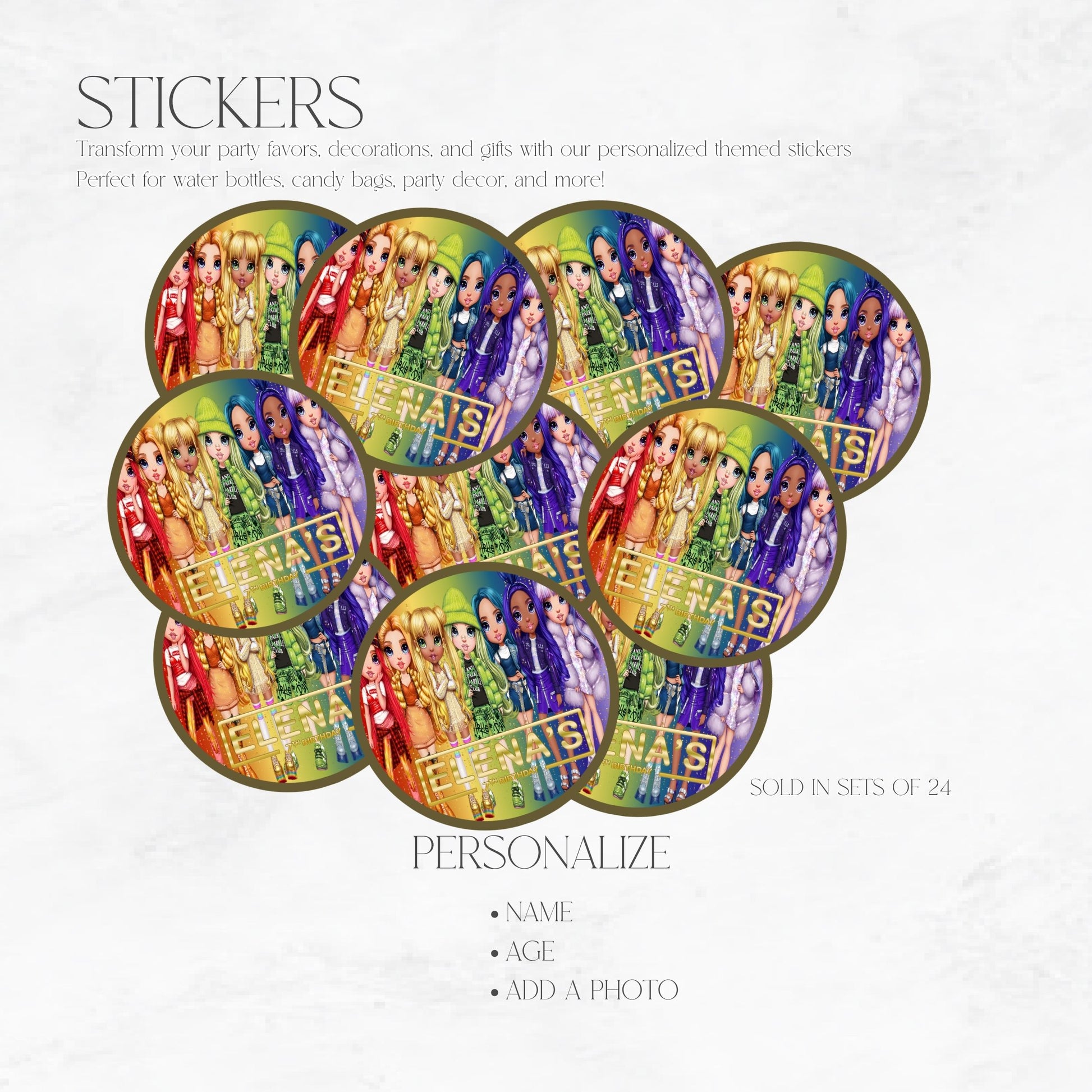 Bring your party to life with these stunning Rainbow High Dolls stickers, perfect for adding a vibrant touch to your themed celebration. Featuring a beautiful rainbow color scheme with gold accents, these stickers are designed to allow you to add shine and tie together your Rainbow High party theme seamlessly.