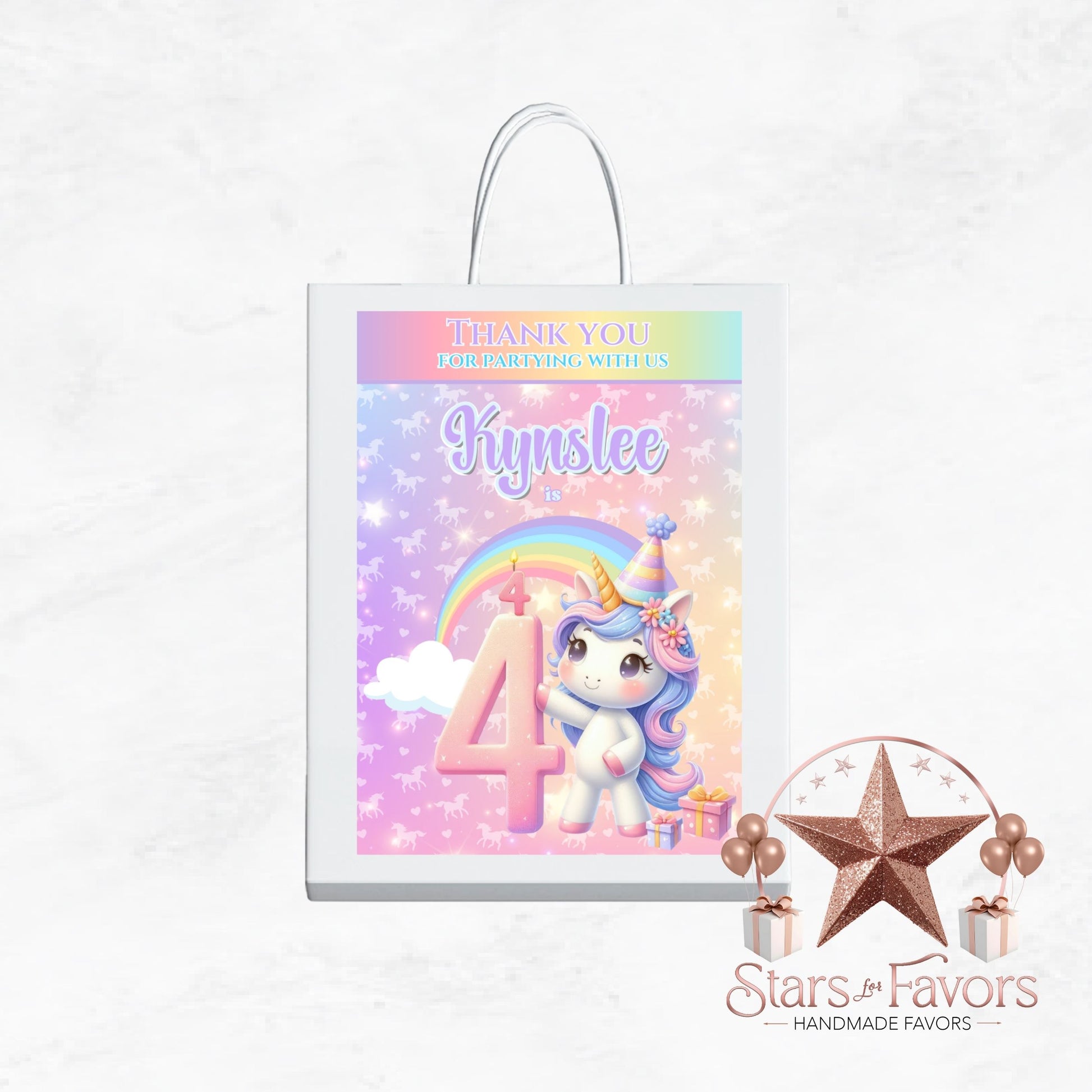 Elevate your event with these charming Rainbow Sparkle Unicorn Gift Bags, designed to delight guests of all ages. Add them to your party decor for a truly magical celebration!