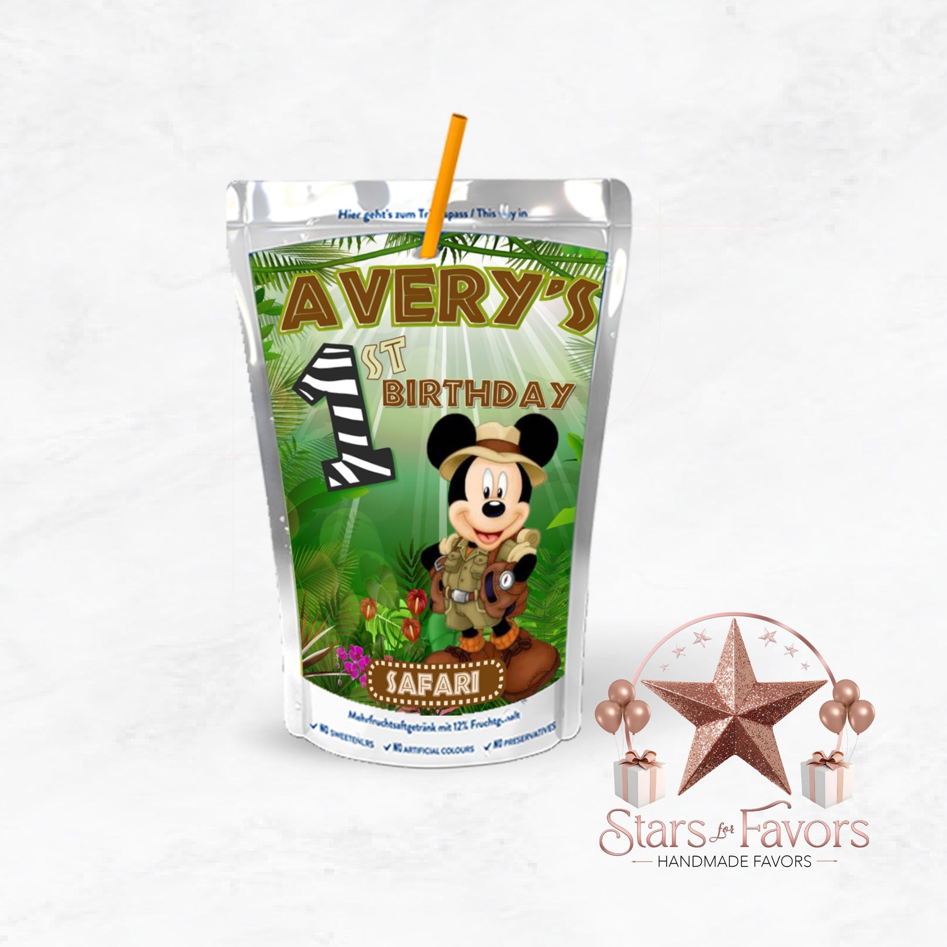 Safari Mickey Custom Juice Labels – Set of 12 – Printed or Filled Capri Sun Pouches
