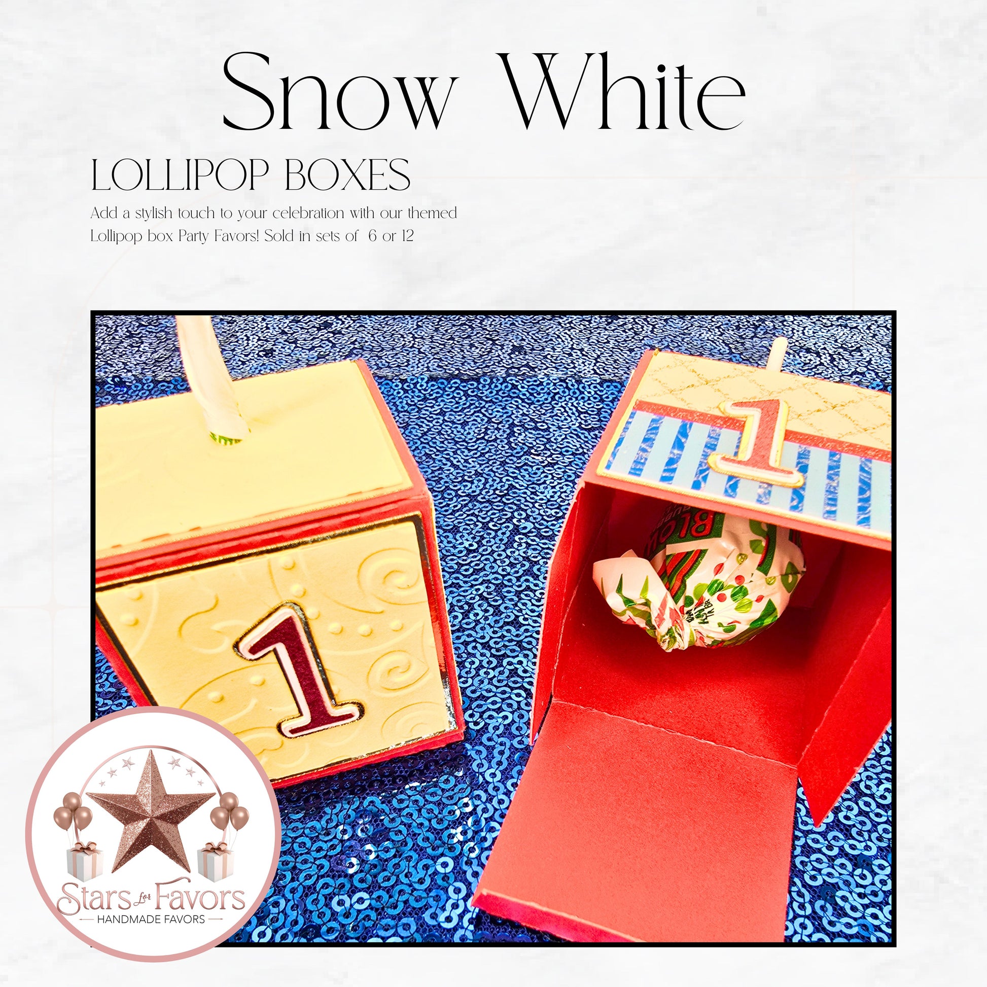Make your Snow White-themed celebration even sweeter with these custom lollipop boxes! Perfect for birthday parties, princess events, and fairytale-inspired celebrations, these charming favor boxes add a magical touch to your party treats.