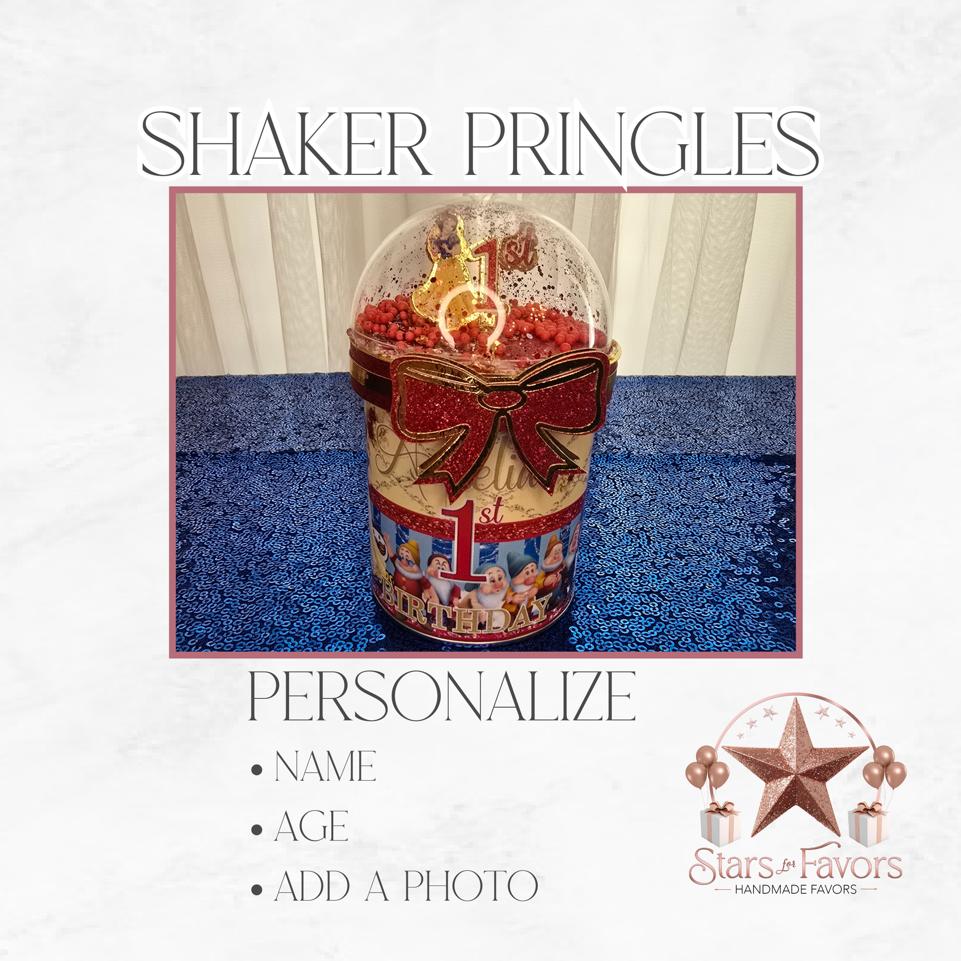 Make your Snow White-themed celebration extra magical with these custom Pringles chip cans! Each can is beautifully designed to match your fairy tale party theme and features a shaker top for a fun and unique touch. Perfect for birthday parties, princess events, and Disney-inspired celebrations!