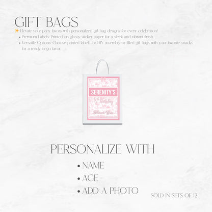 Pink Toile de Jouy Safari Gift Bags – Set of 12 (Filled or Printed)