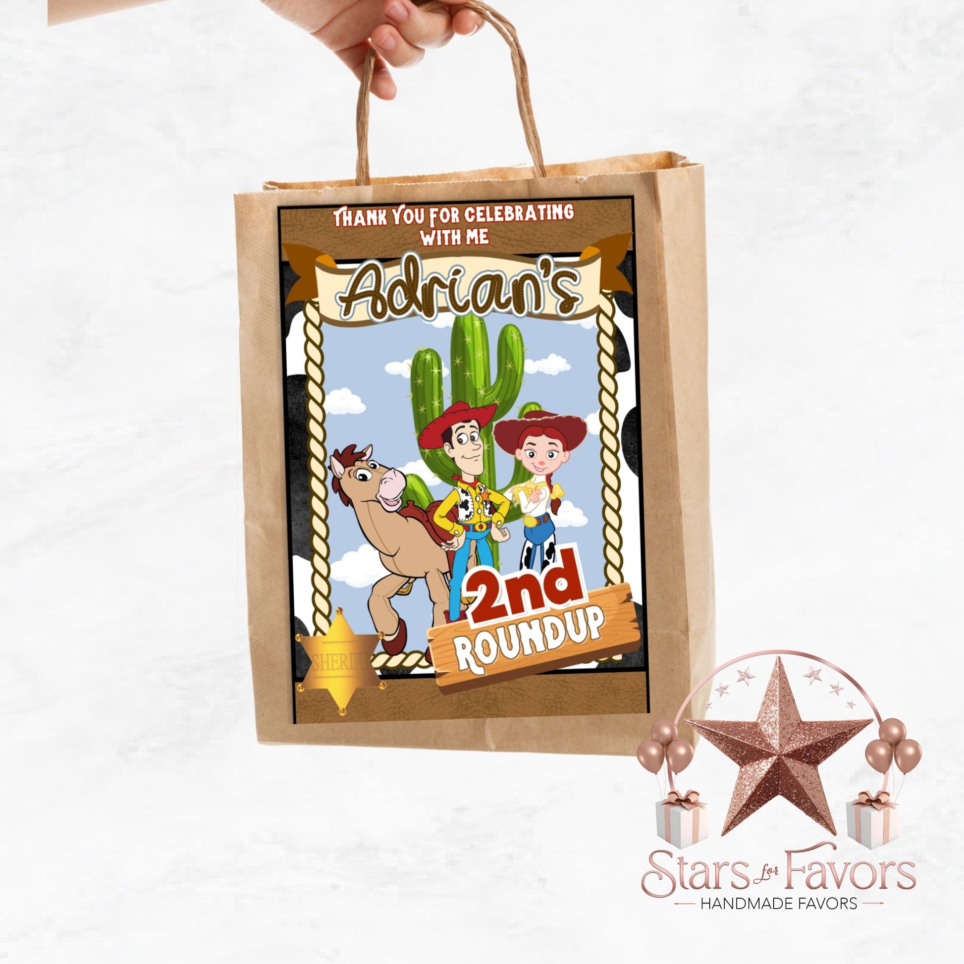 Giddy up and grab the perfect party send-off! These Toy Cowboy Roundup gift bags are the ideal way to wrap up your Toy Story-inspired celebration. Each bag is themed, colorful, and customized with your child’s name and age — making your party favors feel extra special and on theme!